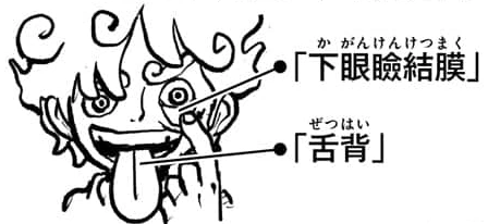 O: Này!! Đừng có lè lưỡi ra như thế!! Với một đứa trẻ 8 tuổi như thế là hư lắm đấy!! SBS đã bắt đầu rồi, và ta chưa thấy ai lè lưỡi kiểu đó trong hàng chục năm nay rồi. Đây là hành vi quấy rối từ bên trong mí mắt dưới (kết mạc dưới) và phần trên của lưỡi (lưng lưỡi)!! Đó là “Akahara”!! Khi Nika cười á~? Đó là một biểu cảm hài hước được dùng trong anime ngày xưa!! Vậy thôi. Các bạn có thể tìm thấy dễ dàng, cứ tìm trên YouTube là ra!! (Ghi chú: “Akahara” là thuật ngữ Oda tự chế, kết hợp từ “aka” (màu đỏ – ám chỉ mí mắt đỏ khi kéo xuống) và “hara” (trong harassment – quấy rối). Hành động này thường gọi là Akanbe ở Nhật).