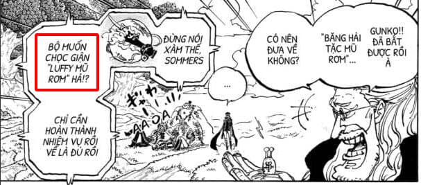Điên à, Sommers, ngươi muốn chọc giận Luffy Mũ Rơm à? Chỉ cần hoàn thành nhiệm vụ rồi quay về là đủ rồi. Câu này làm tôi nhớ tới lúc trước, Ngũ lão tinh cũng từng nói rằng: Không thể để cho Tóc Đỏ nổi giận, bởi sẽ không thể kiểm soát được, khi biết tin Shanks với Râu Trắng sắp gặp nhau.