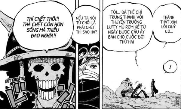 “Thành thật xin lỗi quý cô, tôi đã thể chỉ trung thành với thuyền trưởng Luffy Mũ rơm kể từ ngày được cậu ấy ban cho cuộc đời thứ 2.”