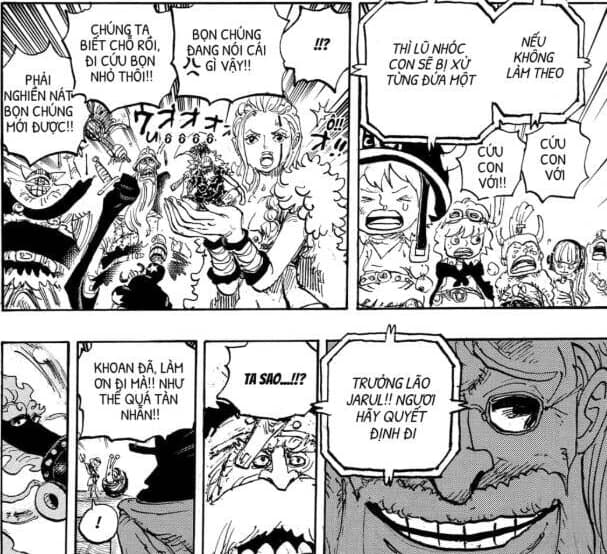 Thế thì liệu rằng Jinbe có thể làm được điều gì tạo ra bước ngoặc hay cũng phải bó tay chịu trói, dù sao thì lúc này ông cũng đang suy nghĩ tìm cách, cũng như thắc mắc năng lực của Gunko là gì, vậy nên Nami đừng có hét to gây sự chú ý.